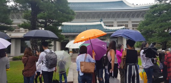 관람 당일, 신청 시간 오전 11시에 맞춰 경복궁 동측 주차장에 도착했다. 빗방울이 떨어지기 시작했다. 굵은 빗방울은 아니었지만 우산을 써야만 했다. 습도도 무척 높아졌다.