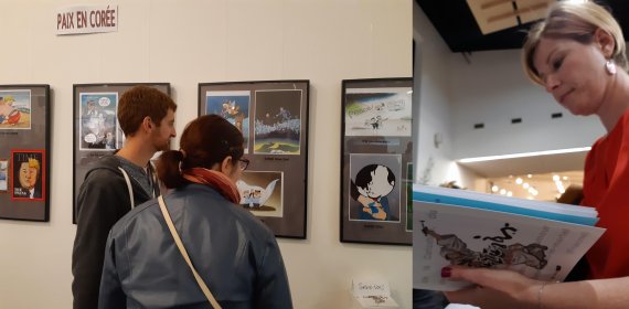 [부천=강근주 기자] ‘한반도의 평화’ 특별전시가 프랑스 쌩-쥐스트-르-마르텔 국제시사만화살롱에서 9월28일 성공적으로 개막했다. 이번 특별전은 한국만화영상진흥원과 문화체육관광부가 후원하고 있다.