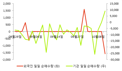 다음 표는 동종목의 외국인, 기관의 일별 순매수량을 나타낸 것이다.