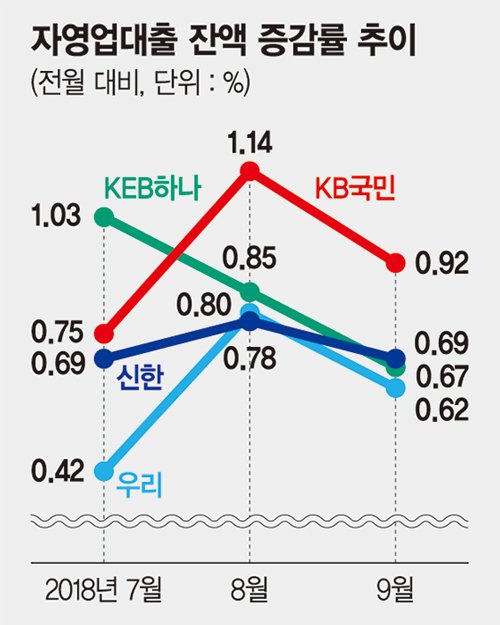 9월 4대은행 187兆 돌파, 전월대비 증가율은 꺾여..불경기에 사업실패 우려