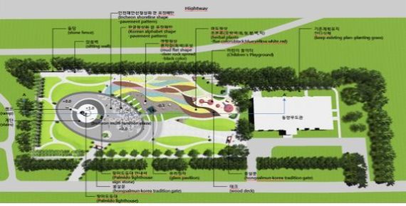 인천시는 팔미도 등대와 한글·파도를 형상화한 바닥과 돌담, 정자 등 한국과 인천의 특성을 살린 기본설계를 상트페테르부르크시에 제공했다.
