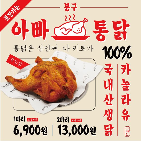 '봉구아빠통닭'은 국내산 생닭을 100% 카놀라유를 사용해 봉구비어가 개발한 염지법과 튀김옷으로 튀겨 매콤하면서도 고소한 맛으로 차별화 한 것이 특징이다.