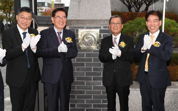 이날 행사는 우리나라 한방문화를 대표하고 한방의 세계화를 선도하는 서울한방진흥센터 1층 정문 입구에 가로 30㎝, 세로 30㎝ 규모의 동판을 설치하는 것으로 전재호 파이낸셜뉴스 회장과 유덕열 서울 동대문구청장, 강현수 국토연구원장, 최영섭 약령시협회장 등이 참석했다.