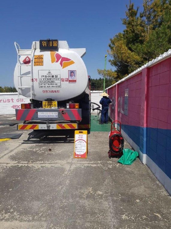 구정주유소에 따르면 유류 입고 작업 시 위험경고 안내판과 소화기를 비치한 후 위험물안전관리자가 입고 종료까지 비상대기 하고 있다.