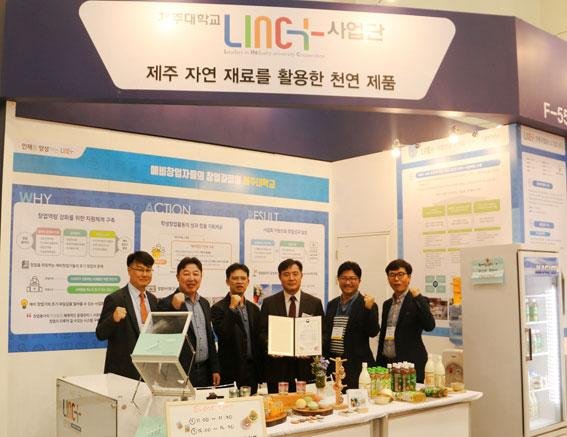 제주대 LINC+사업단은 ‘예비 창업자의 길잡이’라는 성과로 창업동아리 학생들에게 사업화 지원을 통해 실제 창업을 이뤄낸 제주 천연재료를 활용한 제품(Lay over)을 전시했다.