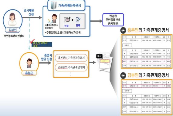 가족관계 등록사항별 증명서에서 변경된 주민등록번호 뒷부분 6자리 숫자를 16일부터 비공개할 수 있게 된다. 종전에는 가정폭력 등 피해자의 변경된 주민등록번호가 기재된 가족관계증명서 등을 가해자가 발급받을 수 있어 피해자의 변경된 주민등록번호가 다시 유출될 수 있다는 점이 문제로 지적돼 왔다.