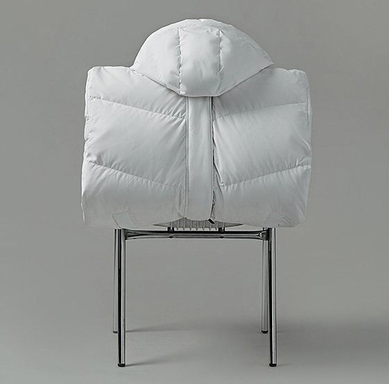 레블스 롱다운 벤치코트는 롱패딩의 단점인 보관상의 불편함도 획기적으로 개선했다. 행거루프를 이용해 회사에서나 학교에서 롱다운을 의자에 걸었을 때 바닥에 끌리지 않도록 기능을 추가한 것. 뒷목 부분에 루프 디테일인 행거루프를 이용해 롱다운을 반으로 접어 가장 하단의 스냅을 행거루프에 걸어 잠그고, 양 소매를 안쪽으로 접어 넣으면 깔끔하게 의자에 걸 수 있다.