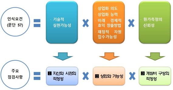 감독지침에서 제시한 각 개발유형별 자산화 가능 단계 이전에 자산화한 경우 회사의 주장 및 논거를 중점적으로 점검한다. 감독지침상 연구개발비의 자산화가 가능한 단계로는 신약은 임상3상 개시 승인, 바이오시밀러는 임상1상 개시 승인, 복제약은 생동성시험 계획 승인, 진단시약은 제품 검증 등이다.