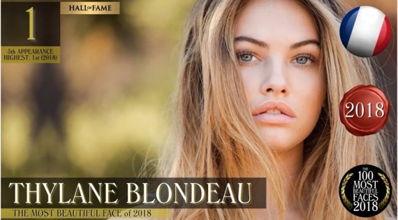 프랑스 모델 틸란 블롱도(Thylane Blondeau·18)가 ‘2018 세계에서 가장 아름다운 얼굴’ 1위에 뽑혔다.