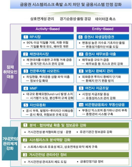 우선 RP시장은 RP 차입 비중이 큰 증권사와 자산운용사 대상으로 RP차입 규모에 연동하는 ‘현금성자산 보유비율 규제를 연내 도입한다.
