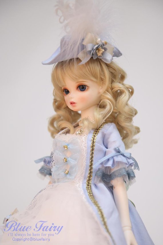 이번에 선보이는 블루페어리社의 구체관절인형 ‘메이’와 ‘올리브’는 43cm크기로, 아름다운 인체를 구현하기 위해 풀 블라섬 바디로 구성했으며, 최상급 재료를 사용해 로코코풍의 화려한 드레스와 실크 이너드레스로 제작했다.