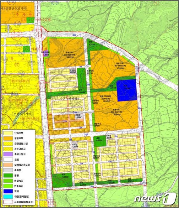 안림지구에는 공동주택 2448세대, 단독주택 446세대, 초등학교 1곳, 공원, 주차장, 근린생활시설, 완충·연결 녹지 등이 조성될 예정이다.