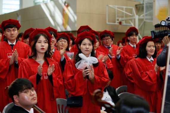 정무영 총장은 졸업생들에게 “어느 때보다 빠르게 변화하고 있는 세계에서 여러분의 꿈을 이뤄내기 위해선 끊임없는 자기혁신과 변화가 필요하다”며 “자신의 능력이 얼마든지 개선될 수 있다는 ‘성장 마인드세트’를 갖고 과감한 도전에 나서달라”고 당부했다.