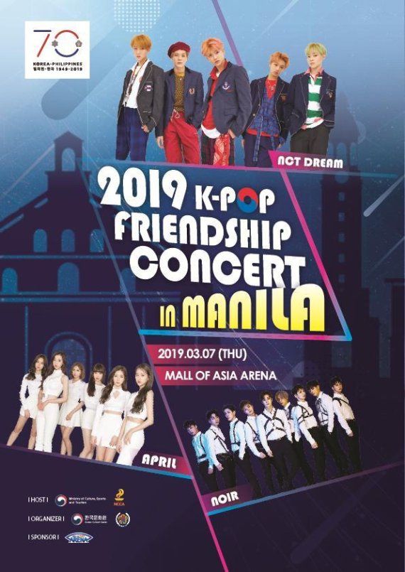 문화체육관광부는 ‘2019 한국-필리핀 상호교류의 해’를 맞이해 필리핀 문화예술위원회(위원장 비르힐리오 알마리오, 이하 문예위)와 함께 다양한 문화교류 행사를 진행한다. 그 개막 행사로, 7일 필리핀 마닐라 몰 오브 아시아 아레나에서 ‘2019 한국-필리핀 K팝(K-POP) 우정 콘서트’가 열린다.