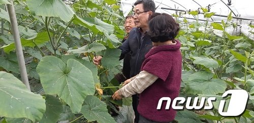 (대전ㆍ충남=뉴스1) 박찬수 기자 = 전용석 농협대전지역본부장은 12일 오전 대전시 동구 이사동 소재 호박 재배 송인선 농가를 방문해 시설하우스를 둘러보고 애로사항을 청취했다.
