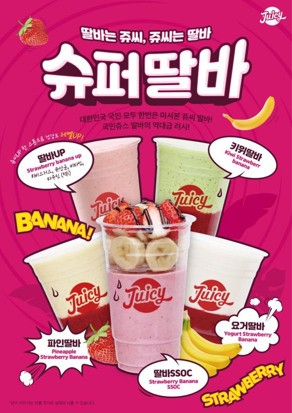 쥬시 관계자는 "신제품의 콘셉트는 '딸바는 쥬씨, 쥬씨는 딸바'라는 접근으로 쥬씨의 1등 메뉴인 '딸바'를 '국민주스'로 안착시키기 위한 것"이라고 말했다.