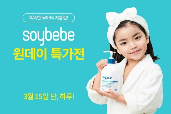 (주)오쎄의 영유아 스킨케어 브랜드 소이베베(Soybebe)가 G마켓 판매 베스트 1위 달성을 기념해 G마켓서 최대 52%를 할인하는 원데이 특가전을 진행한다고 밝혔다.