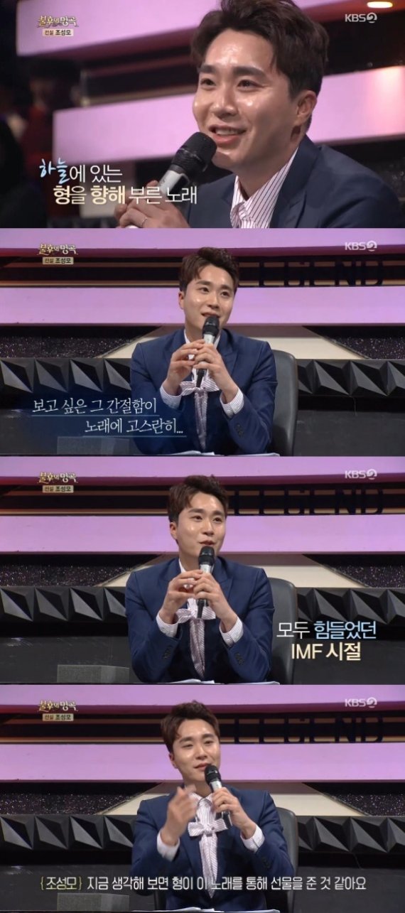 (서울=뉴스1) 김민지 기자 = 조성모가 돌아가신 큰 형을 그리며 '투 헤븐'을 불렀다고 했다.