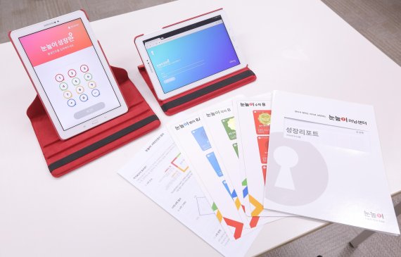 26일 대교에 따르면 현재 전국 약 800개 눈높이러닝센터에서 '공부역량 계발 서비스'를 제공 중이다. 이 서비스의 핵심은 태블릿PC 앱인 '눈높이성장판'과 '성장리포트'이다.