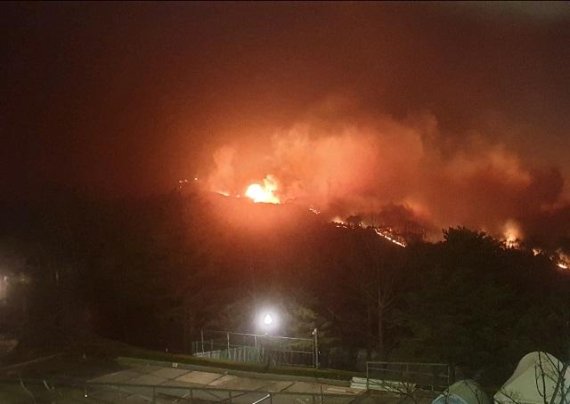 5일 오전 00시 48분께 강원도 동해시 망상동 산61번지에서 산불이 발생, 소방당국이 진화에 나섰다. 사진은 고성산불로 속초시내로 번진 산불. 사진=서정욱 기자