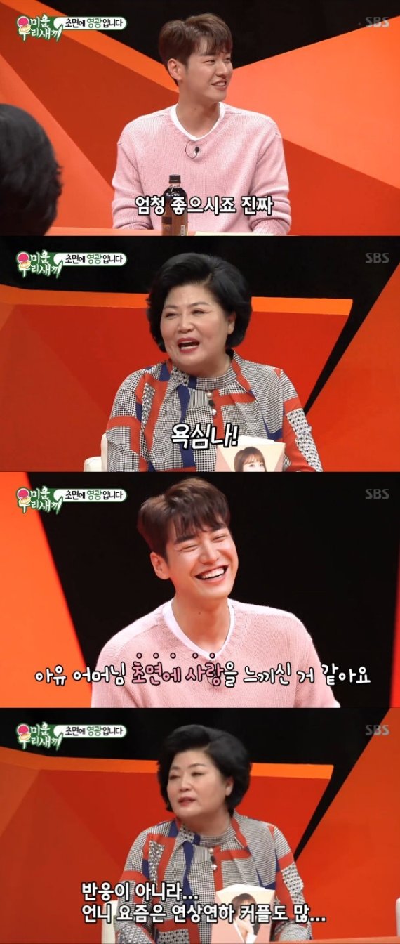 홍진영의 어머니가 특히 반기자, 다른 어머니들은 "진영엄마는 딸만 둘이니까 우리와는 다른 눈빛이지 않겠나"라고 했다. 신동엽은 "그런데 눈빛이 아들을 보는 눈빛은 아니었다"라고 해 웃음을 자아냈다.