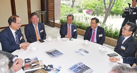 ○…오랜만에 한자리에 모인 금융투자업계 인사들은 서로의 회사 상황과 관련해 평소 궁금한 것을 물어보기도 했다. 이성원 트러스톤자산운용 부사장은 나재철 대신증권 사장에게 "(나인원 한남) 건물이 잘된 것 같아 투어를 좀 다녔다"고 말했고, 나 사장은 "10월 말 준공 예정이다. 내부 준공이 50% 정도 완료됐다"고 답했다. 이현승 KB자산운용 대표가 정영채 대표에게 "(본사) 이사 가느냐"고 묻자 정 사장은 "가격이 저렴한 곳으로 가성비를 따져 갈 것"이라고 말했다.