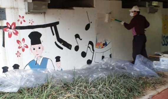 28일 한 온라인 커뮤니티에는 인천시 계양구 서부천 일대에 조성된 박유천 벚꽃길의 벽화와 명패 등을 철거하는 사진이 게재됐다.