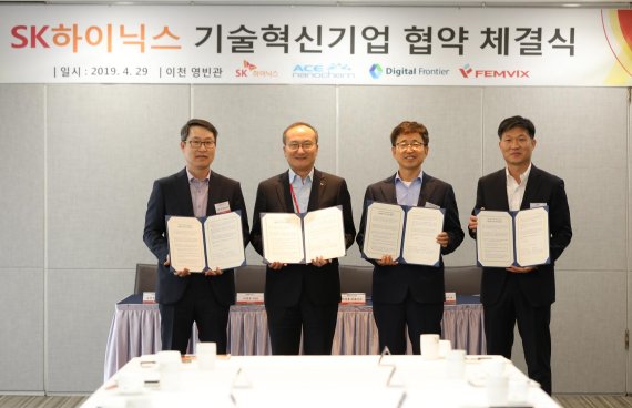 이날 협약식에는 SK하이닉스 이석희 최고경영자(CEO)를 비롯해 디지털프론티어 오성구 대표, 펨빅스 김옥률 대표, 에이스나노켐 이종훈 대표 등이 참석했다.