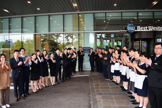 이날 하버파크호텔은 4성 등급 획득을 기념해 호텔 입구에서 민민홍 인천관광공사 사장과 관광산업실장, 운영사 ‘BGH’ 대표, 총지배인을 포함한 호텔 임직원이 모인 가운데 현판식 행사를 진행했다.
