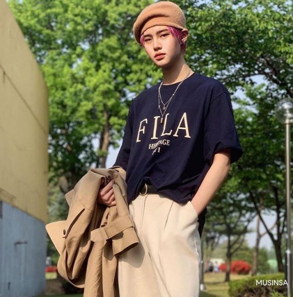 패션업계 관계자는 "기본 티셔츠에 바지는 자칫 밋밋해보일 수 있는데 티셔츠에 들어간 큰 로고로 포인트 삼기 좋다"며 "최근 연예인들도 빅 로고, 자이언트 로고 티셔츠를 활용한 깔끔한 캐주얼룩을 많이 연출하고 있다"고 전했다.