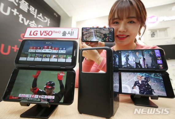 【서울=뉴시스】이국현 기자 = 삼성전자의 '갤럭시S10 5G'에 이어 LG전자의 'V50 씽큐'가 출시되며 5G 가입자 확보를 위한 이통 3사의 경쟁이 또다시 달아오르고 있다.