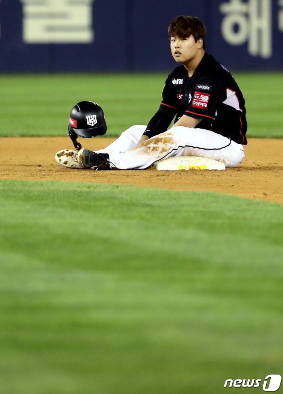 강백호는 11일 수원 케이티위즈파크에서 열린 2019 신한은행 마이카 KBO리그 키움 히어로즈전에 3번타자 우익수로 선발 출전해 6회말 세 번째 타석에서 상대 선발 에릭 요키시의 투구에 머리를 맞았다.