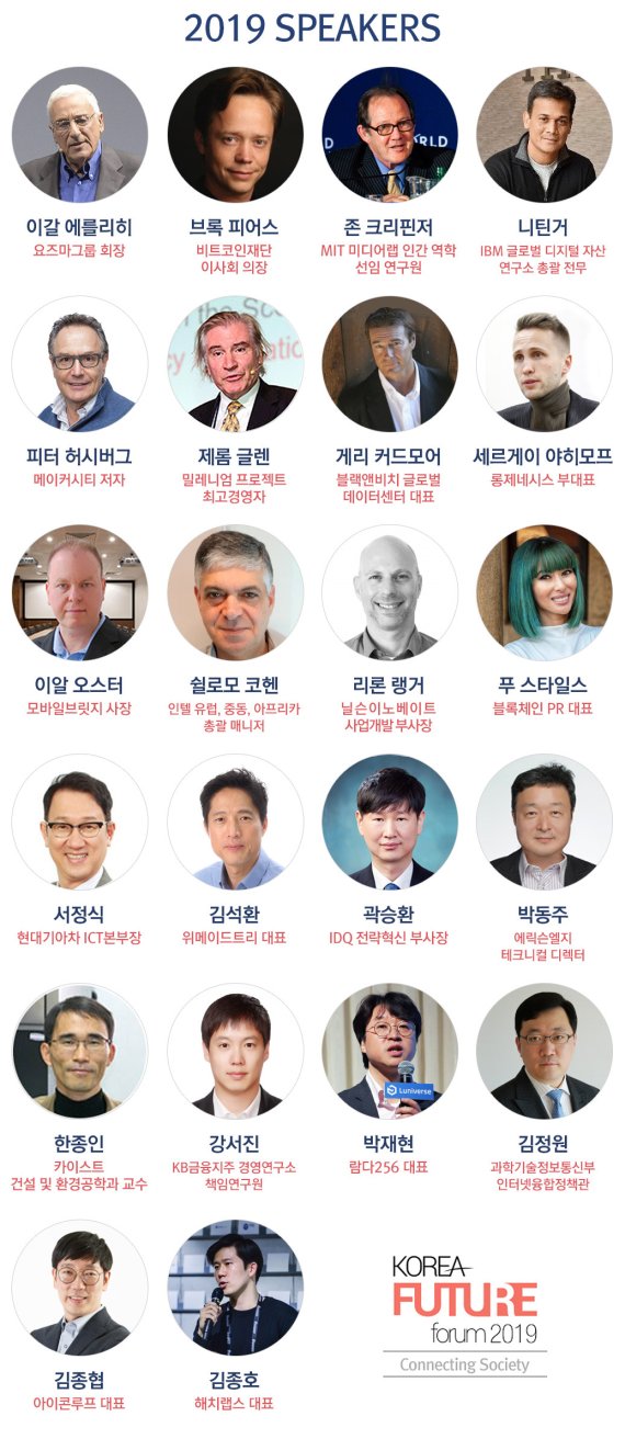 이갈 에를리히 요즈마그룹 회장과 브록 피어스 비트코인재단 이사회 의장 등 글로벌 리더 22명이 [뉴스1] 창사 8주년을 맞아 열리는 '한국미래포럼(KFF) 2019&블록체인 테크쇼'에 모인다.