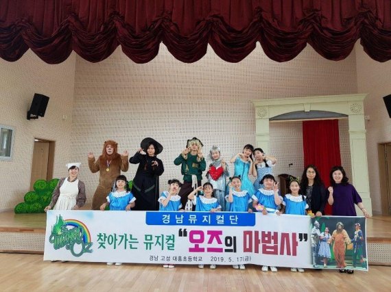 경남뮤지컬단(단장 권안나)은 지난 17일 경남 고성의 대흥초등학교를 찾아 모두가 행복한 학교를 꿈꾸며 어린학생들에게 꿈과 희망을 주는 뮤지컬 ‘오즈의 마법사’를 공연했다.