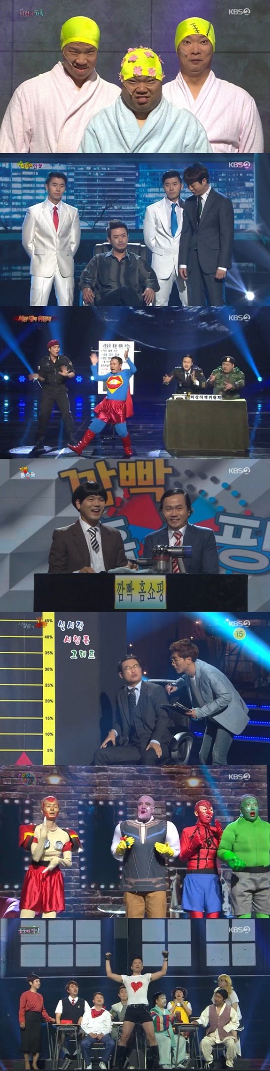 '사랑의 가족'은 신구 코미디언들의 조화가 웃음을 줬다. 송영길-오나미 등 현재 '개그콘서트'에서 활약 중인 이들이 코너를 패러디하자, 뒤이어 원조 멤버 오지헌-정종철-박준형이 등장했다. 세 사람은 전과 다름없는 비주얼로 관객들을 압도, 웃음을 자아냈다.
