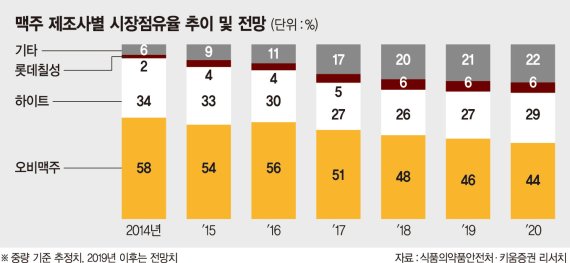 하나금융투자 심은주 연구원도 "신제품 필라이트 및 테라의 2·4분기 매출 기여는 약 700억원으로 추산된다. 연간으로는 2660억원"이라며 "기존 브랜드인 하이트나 맥스의 매출 감소를 상쇄하는 유의미한 수치"라고 강조했다.