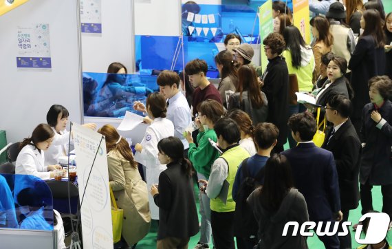 (제주=뉴스1) 오미란 기자 = 제주도가 주최하고 제주상공회의소가 주관하는 '2019 도민행복 일자리 박람회'가 28일 오후 1시부터 오후 5시까지 제주시 한라체육관에서 열린다.