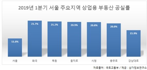 공실률이 가장 높은 지역은 강서구 화곡동으로 21.7%에 달했고 양천구 목동이 21.2%로 뒤를 이었다.