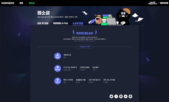 대상 및 최우수상 작품은 향후 ‘네이버웹소설’에 정식 연재돼 상금 이외에 고료가 지급된다. 또 웹툰으로 제작해 네이버웹툰에도 정식 연재될 수 있는 특전이 주어진다. 우수상을 포함한 모든 수상 작품은 네이버시리즈에 소개된다.