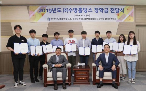 이날 전달된 발전기금은 제주대 전기공학 전공 학생 10명에게 전달됐다.