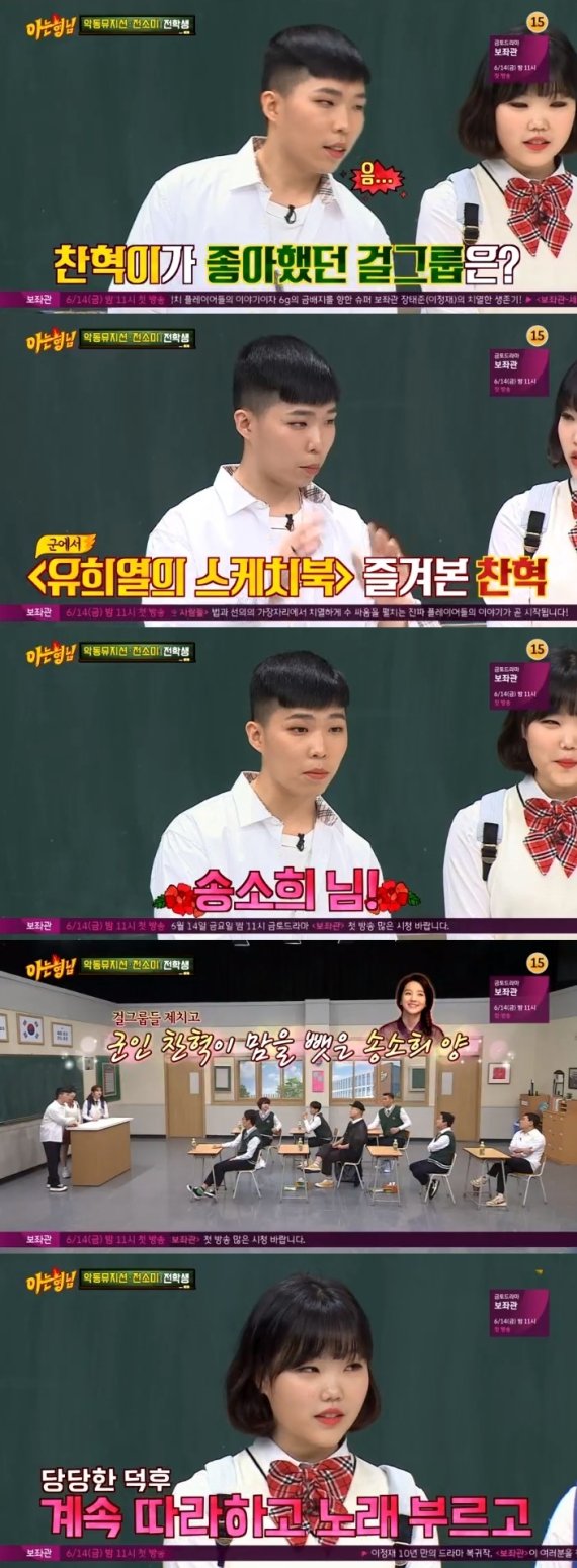 이찬혁은 8일 오후 9시 방송된 JTBC '아는 형님'에서 "군대에서 동기부여된 걸그룹이 누구냐"는 질문을 받았다.