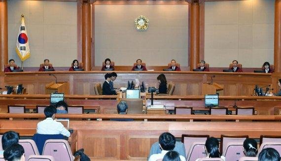 헌재는 13일 오후 2시 대심판정에서 청구인 전국중소기업·중소상공인협회(전중협)가 피청구인 고용노동부를 상대로 2018년, 2019년 최저임금 고시 2개가 헌법에 위반된다며 낸 헌법소원 사건 공개변론을 열었다.