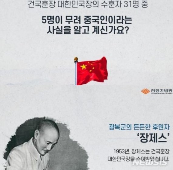 그러나 전쟁기념관측이 중화민국 주요 인물을 소개하는 홍보물에 대만 '청천백일기'도 아닌 중국 '오성홍기'를 내걸면서 역사를 관장하는 기관에서 최소한의 검증조차 하지 않고 홍보하냐는 지적이 이어졌다.