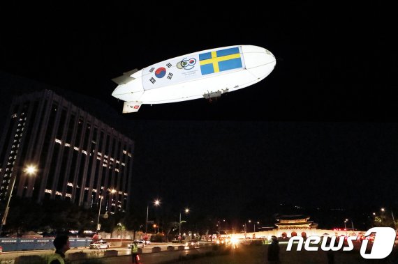 (서울=뉴스1) 최소망 기자 = KT가 스웨덴 국빈 방문 행사에 참여해 한국과 스웨덴을 5세대(5G)로 연결하는 '5G 스카이십'(skyship)과 고품질 영상통화 서비스 '나를'(narle) 시연했다고 16일 밝혔다.