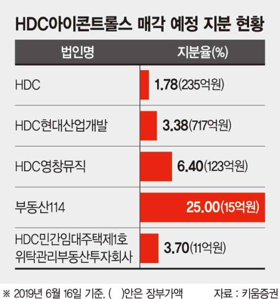 16일 금융투자업계에 따르면 지난 4월 HDC그룹의 지주사인 HDC는 HDC아이콘트롤스 주식 476만4600주(28.95%)를 488억 3715만원에 사들여 자회사로 편입했다. HDC아이콘트롤스는 HDC그룹 순환출자 구조의 핵심 계열사였다. HDC 자회사인 HDC아이서비스(6.7%), HDC아이앤콘스(6.4%), HDC현대이피(14.8%)가 HDC아이콘트롤스의 지분을 가지고 있는 동시에 HDC아이콘트롤스가 HDC 지분 1.78%(106만4130주)를 가지고 있었기 때문이다.