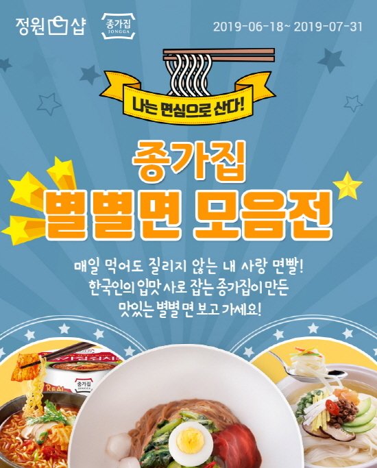 대상 관계자는 "여름철엔 쉽고 간편한 면 요리를 선호하는 소비자가 늘어난다"며 "정원e샵이 준비한 종가집 별별면 모음전을 통해 여러 혜택을 누려보시길 바란다"고 말했다.