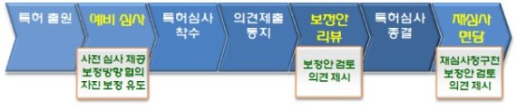 현장 소통형 심사는 3가지로 나눠진다. 예비심사는 특허 본심사전에 사전 심사결과를 설명하는 제도, 보정안 리뷰는 심사관이 통지한 거절이유를 토대로 보정방안을 상담해주는 제도, 재심사 면담은 이미 거절 결정한 특허를 다시 심사하는 재심사 청구전에 보정방안을 상담해주는 제도다.