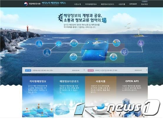 (세종=뉴스1) 백승철 기자 = 국립해양조사원(원장 강용석)은 각종 해양정보를 제공하는 '바다누리 해양정보서비스'데이터 활용건수가 4년 반 만에 누적 1억 건을 돌파했다고 1일 밝혔다.