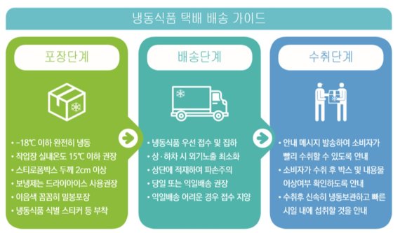 배송 단계에서는 △다음날(익일) 이내 배송 △상·하차 작업 시 되도록 외부 공기에 노출되지 않도록 관리 △포장박스가 직사광선에 노출되거나 노상에 방치되지 않도록 위생적으로 취급해야 한다.