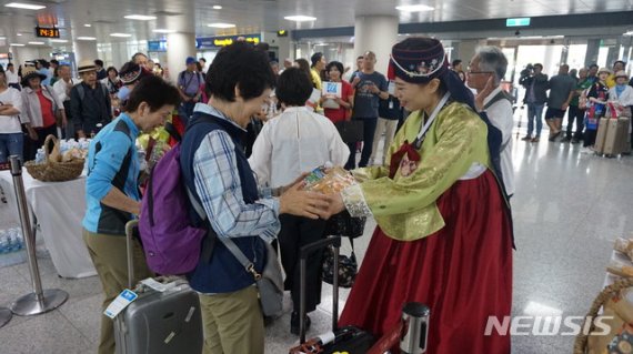 【제주=뉴시스】배상철 기자 = 제주관광공사는 제주항공의 제주~일본 후쿠오카 직항 노선이 신규 취항함에 따라 제주공항 국제선 도착 대합실에서 환영 현수막을 걸고 제주 기념품을 나눠주는 등 일본인 관광객을 대상으로 환영행사를 개최했다고 2일 밝혔다.